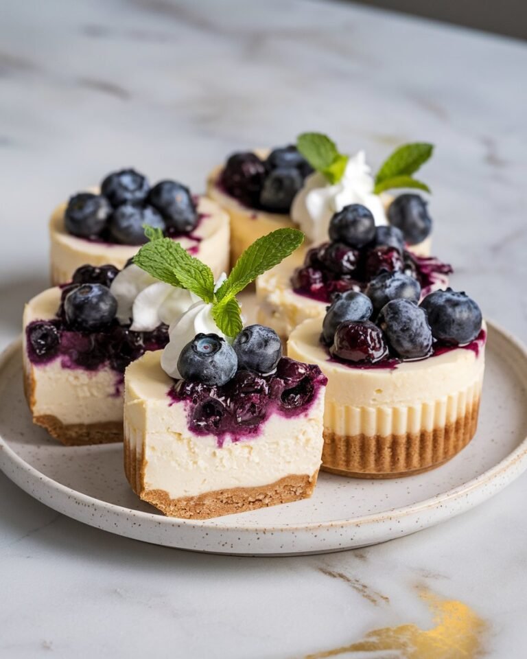 Swirled with juicy blueberries, these mini cheesecakes deliver tangy perfection in every bite—without the usual baking stress.