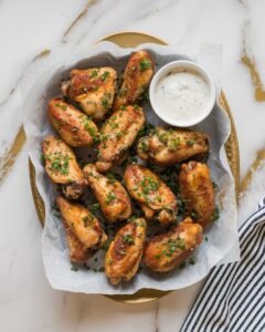 Bake in the preheated oven for 40–45 minutes, flipping halfway through, until the wings are golden brown and the internal temperature reaches 165°F. If you like them extra crispy, broil for the last 2–3 minutes.